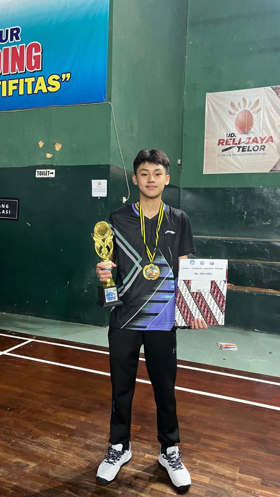 SUMENEP – GOR Sumekar Pajagalan menjadi saksi bisu ketangguhan Kenzi Ichi Muhammad, siswa berprestasi dari MTsN 1 Sumenep. Kenzi sukses mengukuhkan diri sebagai raja bulutangkis tingkat SMP/MTs se-Kabupaten Sumenep setelah meraih gelar Juara 1 Tunggal Putra dalam ajang Turnamen Bulutangkis Hardiknas Sumenep Cup 2026 yang diselenggarakan oleh Dinas Pendidikan Kabupaten Sumenep.