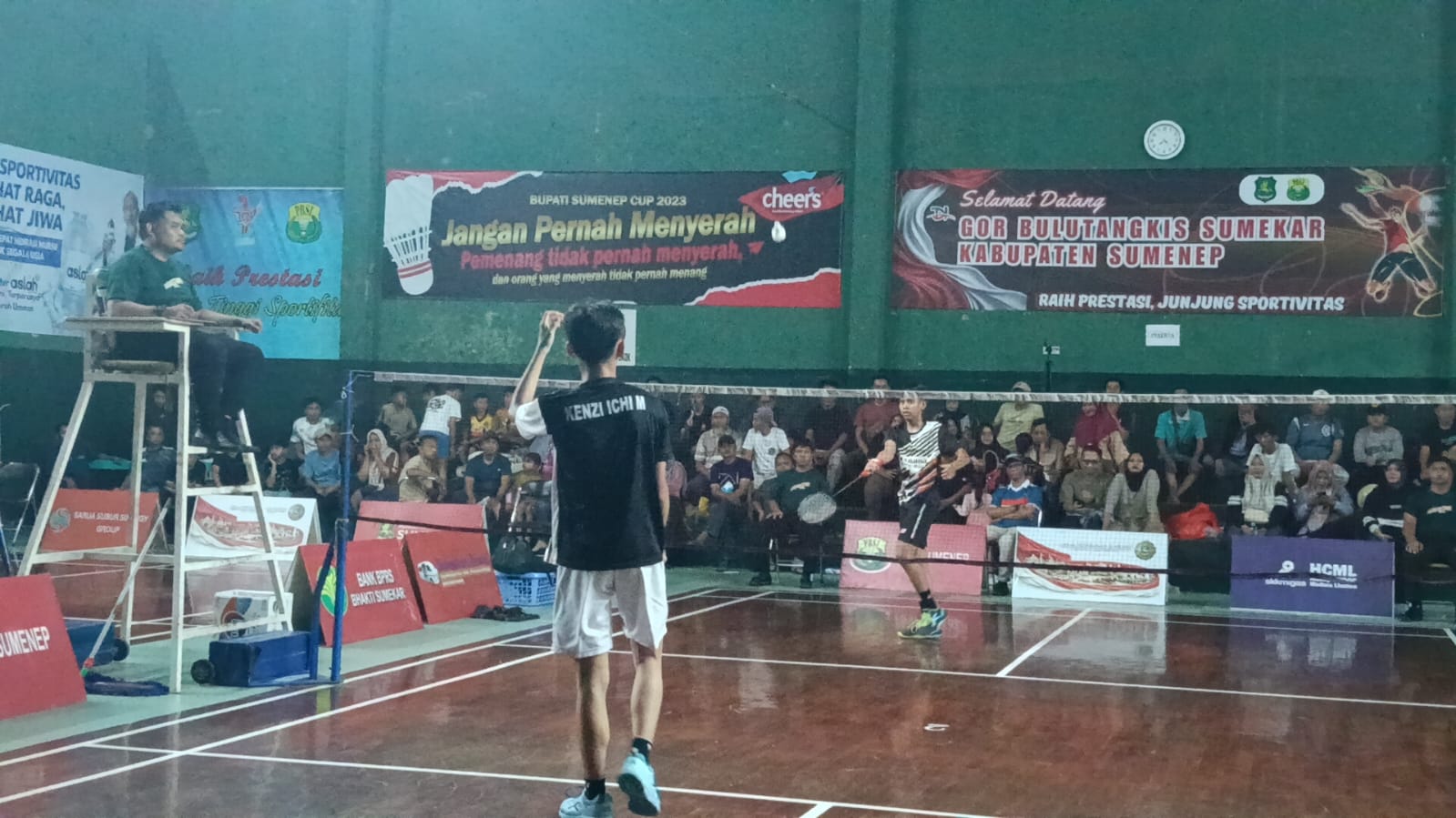 Laga final yang berlangsung kemarin, Senin (27/4/2026) pukul 16.30 WIB, menyuguhkan duel sengit antara Kenzi melawan Denandra Rafa Ardiansyah dari SMPN 1 Kalianget. Sejak set pertama dimulai, Kenzi tampil menekan dengan penempatan bola yang akurat dan smash tajam.