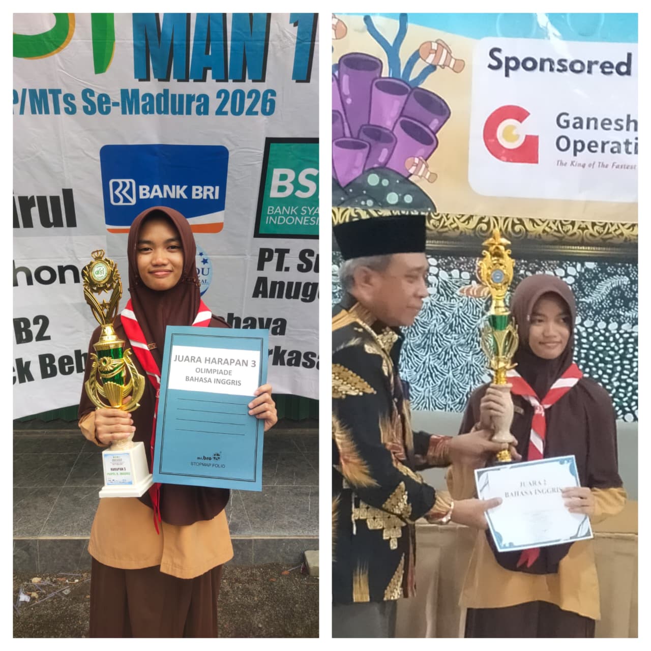 Prestasi gemilang kembali diukir oleh permata dari MTsN 1 Sumenep. Dalam kurun waktu yang sangat singkat, Kholifatul Izzatil Jannah (IX-A) sukses mengharumkan nama madrasah dengan memborong dua piala sekaligus dalam dua ajang kompetisi Bahasa Inggris bergengsi tingkat Madura. Tak tanggung-tanggung, Kholifatul menunjukkan dominasinya hanya dalam waktu dua hari berturut-turut di dua lokasi berbeda. Bisa disebut “Maraton Prestasi di Akhir Pekan”.