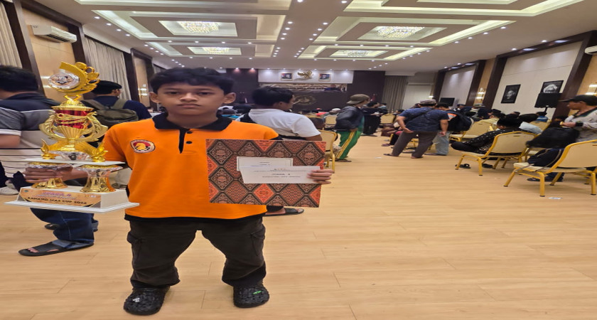 Sahabat kita Tio Jahjah Hakim, siswa kelas VII-A yang akrab disapa Tio, kembali menorehkan prestasi gemilang di bidang olahraga catur. Tio berhasil meraih juara 4 turnamen catur kategori SMP/MTs/sederajat se-Madura dalam ajang Bawang Mas Cup yang diselenggarakan pada 1 Februari 2026. Turnamen tersebut berlangsung di Aula PT Bawang Mas Group, Pamekasan. Keren sekali, ya Sahabat!